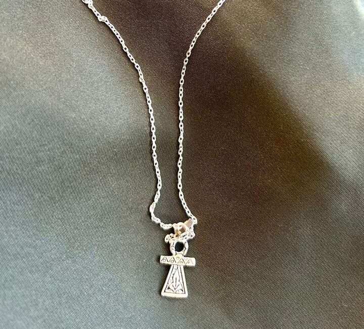 Le Collier Tanit s’inspire de la divinité protectrice Tanit, symbole de fertilité, protection et chance dans la tradition tunisienne et amazighe. Son motif délicatement travaillé en argent rend hommage au patrimoine culturel de la Tunisie tout en apportant une touche élégante et discrète à votre style quotidien.